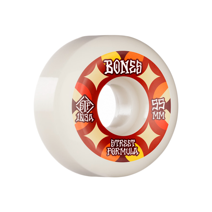 Bones Street Tech Formula powers the legendary Bones STF wheels that roll fast, grip when you need to and slide when you want to, without flat spotting. STF gives you more control to skate without flat spotting.