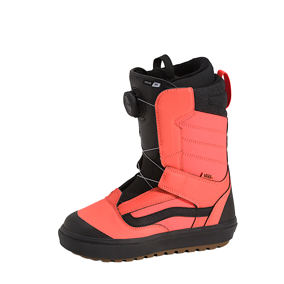 The Juvie OG is built to support groms who rip. Complete with a V1 UltraCush™ liner, V1 POPCUSH™ footbed, and V1 Waffle Lug outsole with All-Trac, this boot matches features with all of Vans’ adult-level OG products. When combined with the BOA® Fit System, the Juvie OG is the youth culture’s clear choice for progression and undeniable style.
